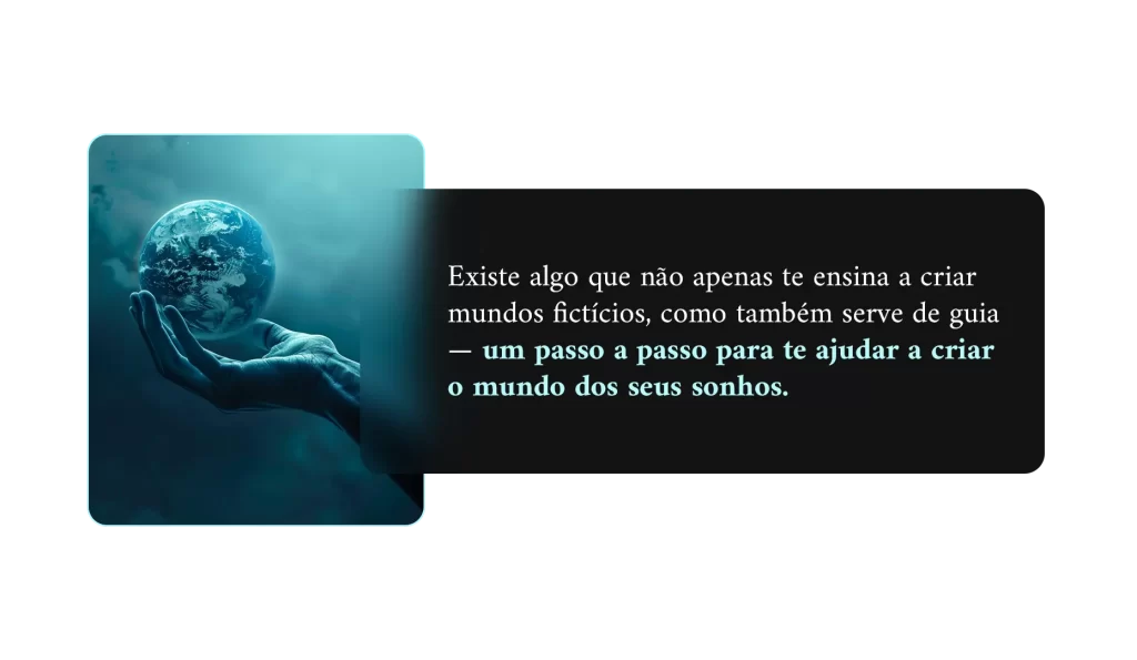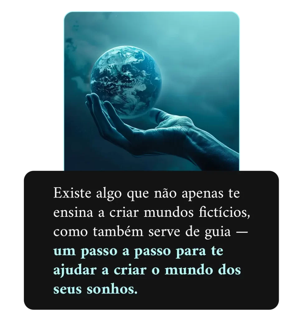 Tenha acesso a um guia prático de worldbuilding para organizar ideias, criar lógica interna e construir mundos que fazem sentido — sem complicar demais.