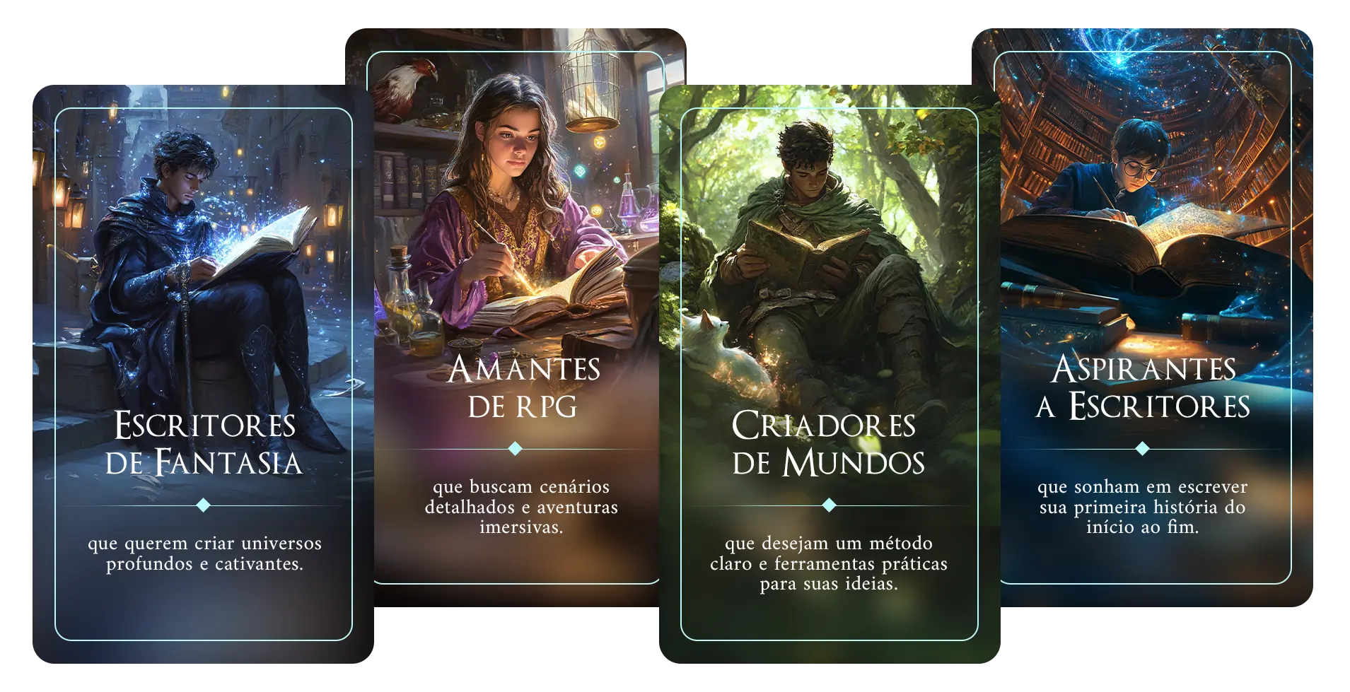 As ideias surgem na sua mente — florestas místicas, reinos distantes, criaturas fantásticas — mas quando chega o momento de colocar tudo no papel, você acaba se perdendo em um mar de detalhes, sem saber como conectar todas as partes.